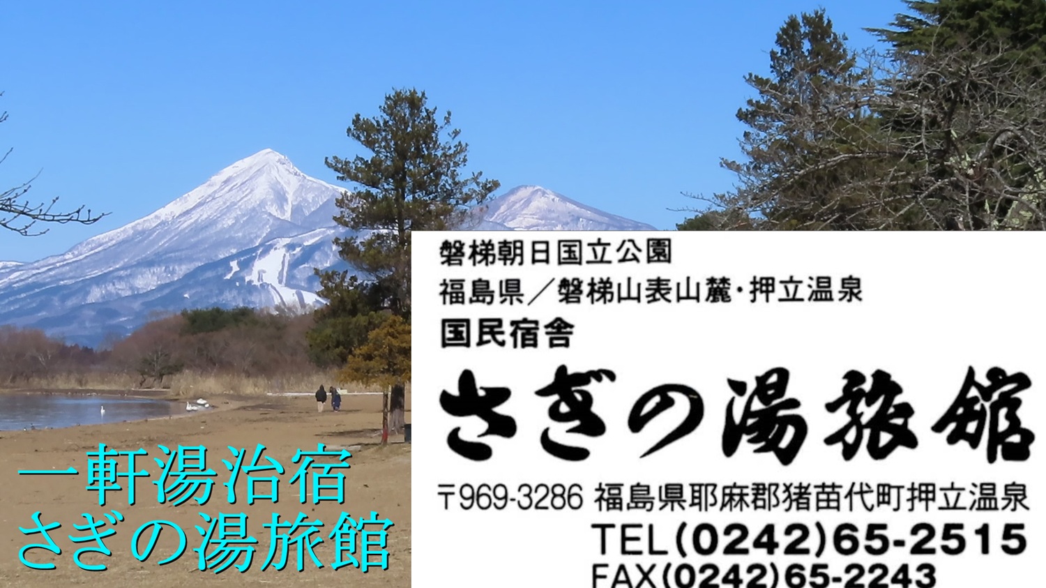 ◇会津猪苗代観光マップBACK◇ ●じゃらん ●楽天トラベル宿泊プラン一覧<磐梯朝日国立公園 表磐梯山麓 さぎの湯旅館> 福島県耶麻郡猪苗代町大字磐根佐賀地2557 |